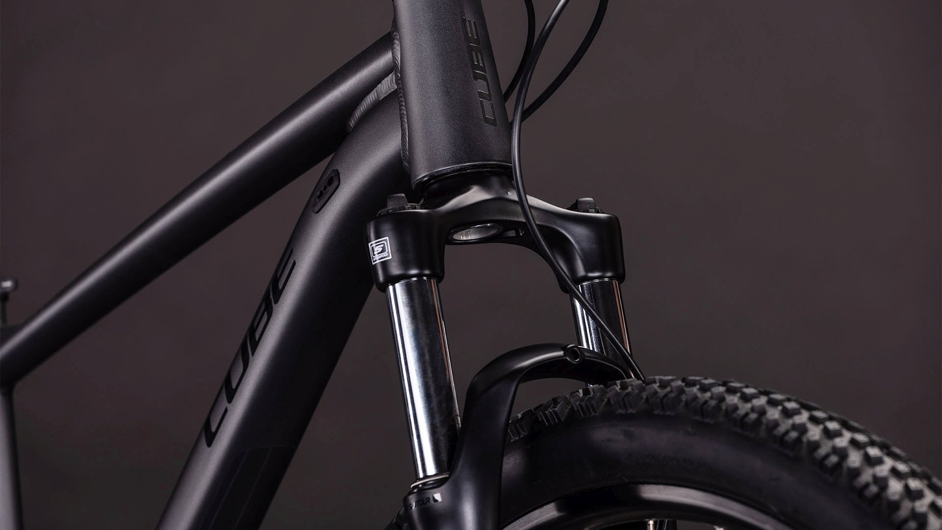 Wer am liebsten Offroad unterwegs ist, kommt am Cube Aim Pro kaum vorbei. Für top Fahrkomfort und Kontrolle – und damit dauerhaften Fahrspaß im Gelände – hat Cube dem Bike eine Gabel mit 100 mm Federweg sowie griffige 2.25 Zoll Reifen spendiert. Mit ihrem weiten Übersetzungsbereich macht die 10-fach Cues Schaltung von Shimano jeden noch so steilen Anstieg zum Spaziergang. Bergab spielen die leistungsstarken hydraulischen Scheibenbremsen ihre Qualitäten aus.