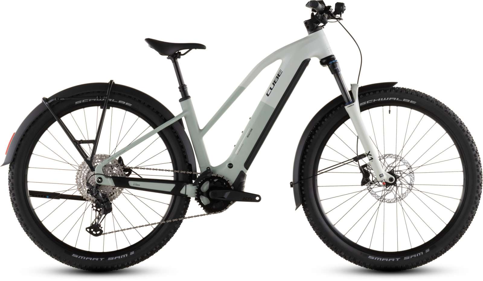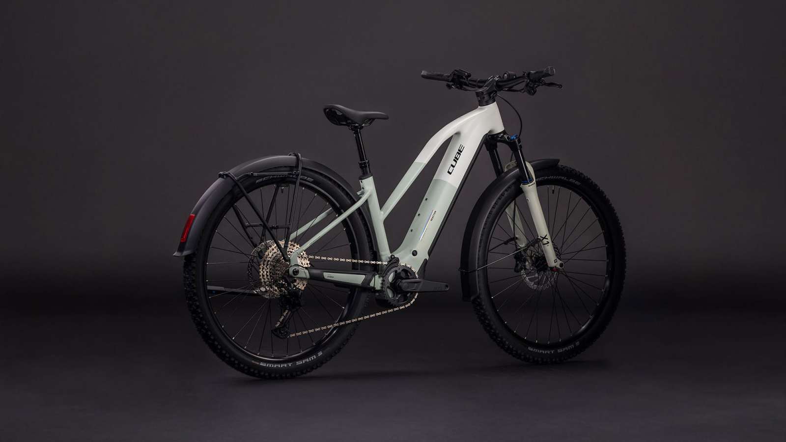 Ein Meisterwerk in Sachen Vielseitigkeit: Der Rahmen des Reaction Hybrid FE ist standardmäßig mit Schutzblechen, einem Gepäckträger, Lichtern und einem Seitenständer ausgestattet. Doch das ist noch lang nicht alles. Sein 800 Wh starker PowerTube Akku von Bosch fügt sich gemeinsam mit dem Bosch CX Motor sicher, sauber und formschön ins Design ein. Zudem ist das Chassis PowerMore-ready, das heißt, es können bei Bedarf weitere 250 Wh mitfahren. Auch die integrierte Sattelklemmung und die nach innen verlegten Züge spielen der cleanen Linienführung in die Karten – und die Kettenführung hält alles top organisiert am Platz. Last, but not least hat Cube dank ihrem Size Split System für alle die richtige Passform im Angebot. Fazit: Alles da, was wichtig ist – für maximalen Fahrspaß!